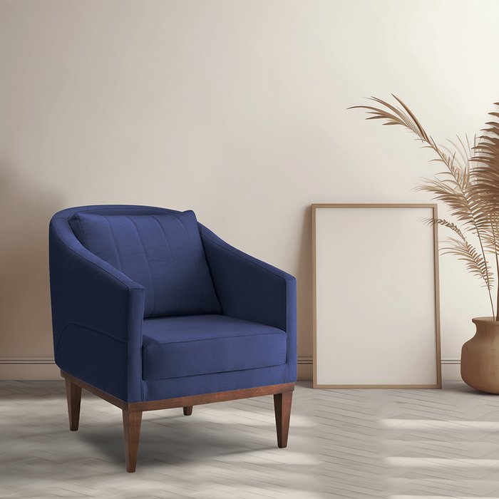 Poltrona Fixa Agatha Tecido Veludo Pés Imbuia Azul