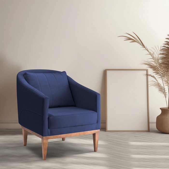 Poltrona Fixa Agatha Tecido Veludo Pés Natural Azul/Natural