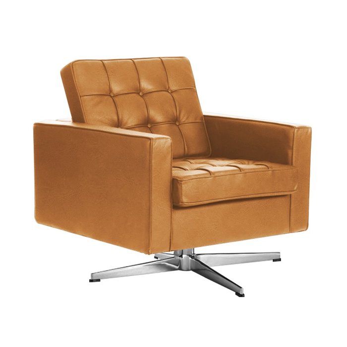 Poltrona Fk Giratória Couro Natural Caramelo Base Alumínio