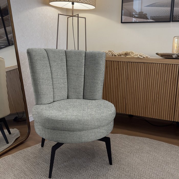 Poltrona Flor Giratória Safira - Tecido Linho Safira Cinza