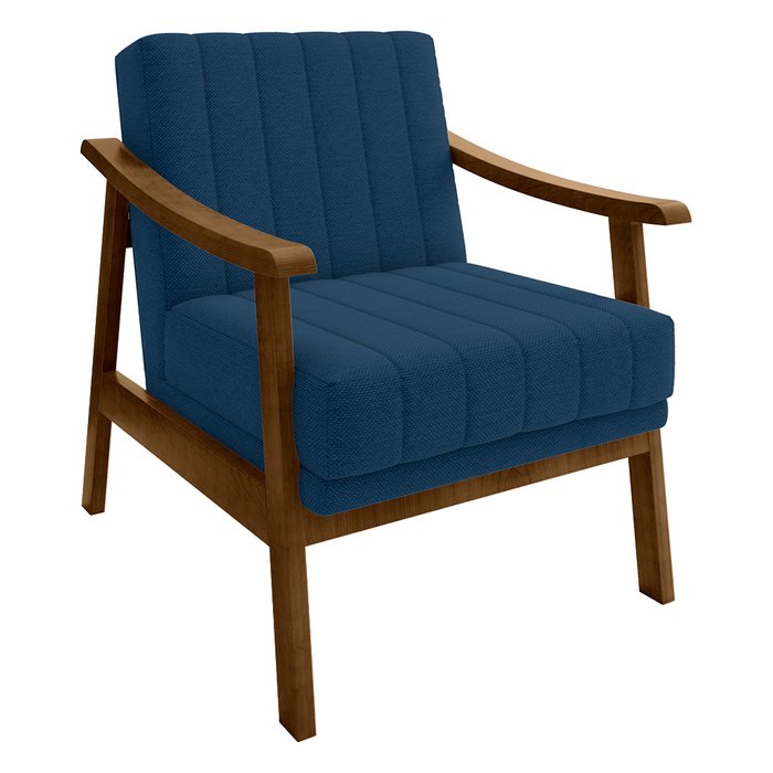 Poltrona Flórida Veludo Azul Marinho Base de Madeira Castanho - D'Rossi DRossi