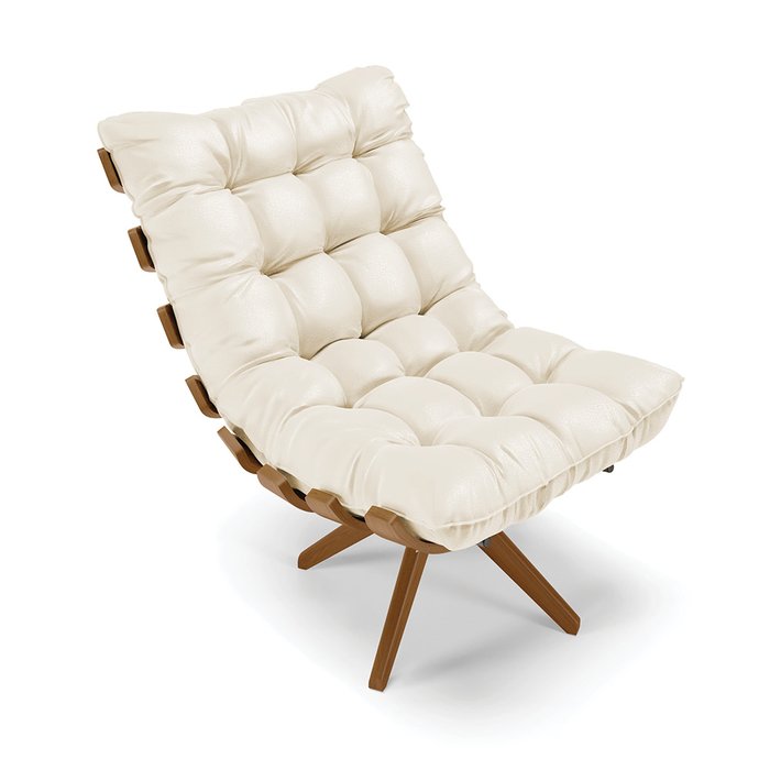 Poltrona Costela, o nome se explica por si só não!? Seu design marcante remete às costelas do corpo humano, além de ser muito confortável. Uma peça perfeita para decorar sua sala de estar. Seu assento, encosto e base giratória são em madeira, as almofadas são super macias, com detalhes capitonê, com fibra siliconada, revestido no tecido Corino no tom Bege. Fala aí se não é perfeita para valorizar o seu espaço! Que tal deixar seu cantinho de descanso mais aconchegante e com muita elegância? Escolha já a sua.