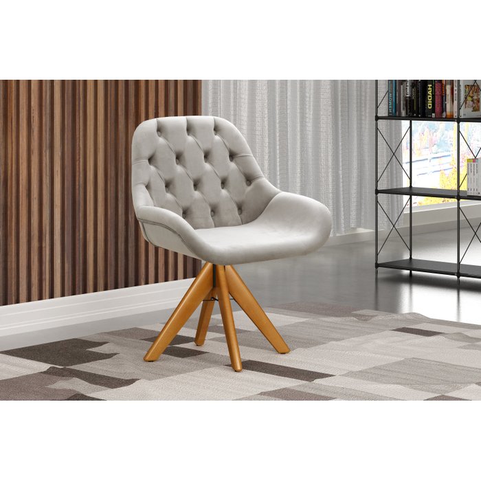 Poltrona Giratória de Madeira Cadeira Decorativa Sala, Escritório, Recepção Lua Bege Claro