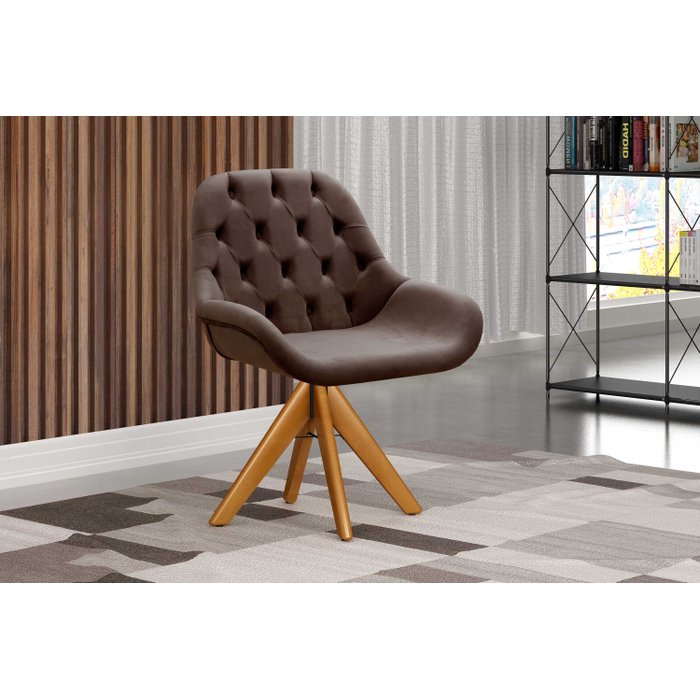 Poltrona Giratória de Madeira Cadeira Decorativa Sala, Escritório, Recepção Lua Marrom