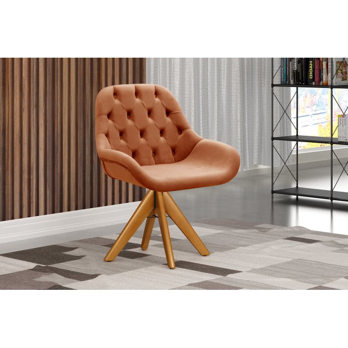 Poltrona Giratória de Madeira Cadeira Decorativa Sala, Escritório, Recepção Lua Terracota