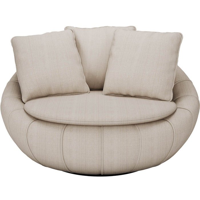 Poltrona Giratória Decorativa Redonda com Almofadas Saphire M22 Linho Cru - Mpozenato