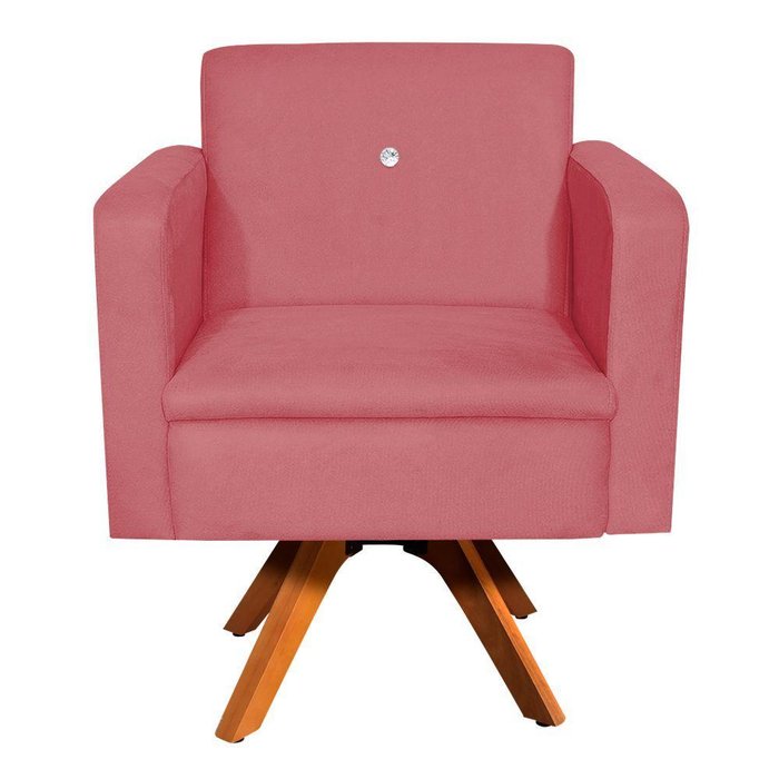 Poltrona Giratória Emília Suede Com Strass Base Madeira Mm30 D´rossi -rose