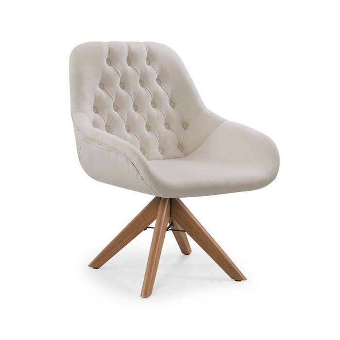 Poltrona Giratória Linho Base em Madeira Serena Bege