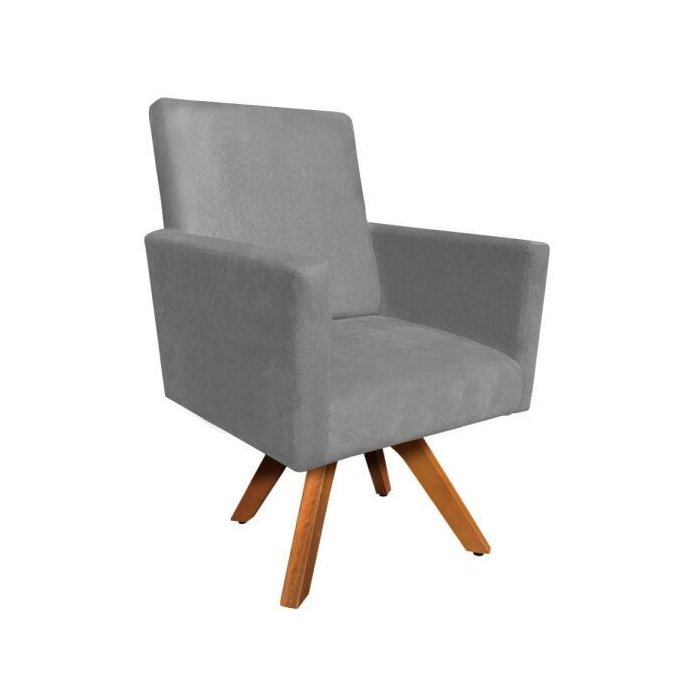 Poltrona Giratória Nina Suede Base Madeira MM30 D'Rossi - Grafite Grafite