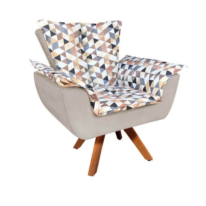 Poltrona Giratória Opala Composê D87 com Suede Base de Madeira - Bege