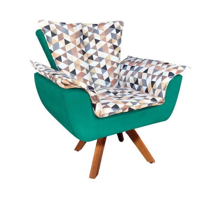 Poltrona Giratória Opala Composê D87 com Suede Base de Madeira - Verde Tiffany
