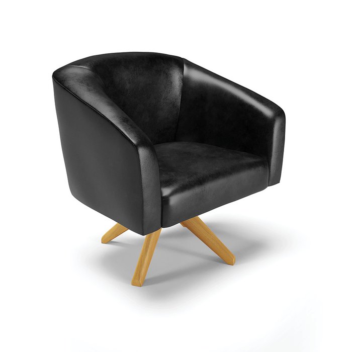 Poltrona Giratória Stella Corano Preto Base Madeira MA30 - D'Rossi