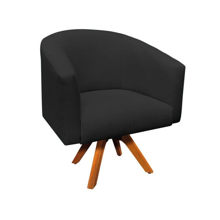 Poltrona Giratória Stella Linho Preto A79 Base Madeira MM30 - D'Rossi Preto