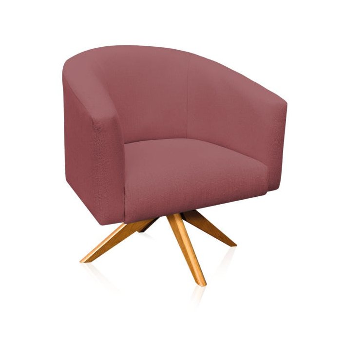 Poltrona Giratória Stella Linho Whisky Rosê A106 Base Madeira MA30 - D'Rossi