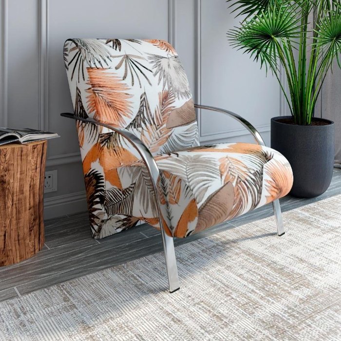 Poltrona Decorativa Guanabara Para Sala Recepção C/ Braços Marrom Palmeira única