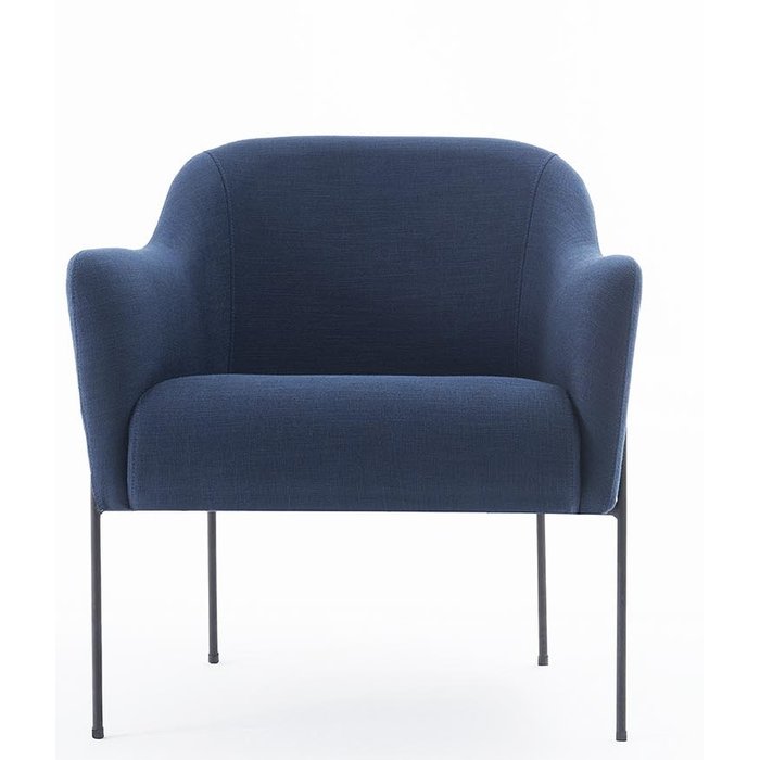 Poltrona Hannah Estofado Linho Azul Marinho Base Aço Preto - Casa Maju