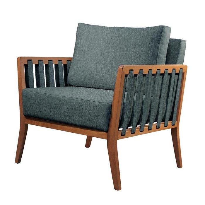 Poltrona Helena Luxo Madeira Maciça Castellar Móbile Linho Azul Linho Azul
