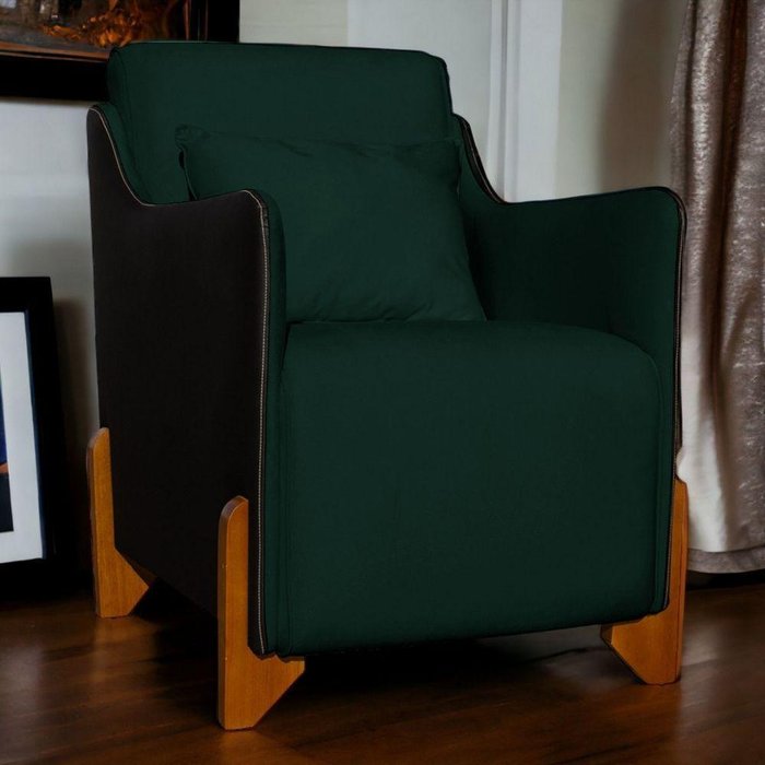Poltrona Heloisa Pés Madeira Composê Veludo Corino Preto Verde verde
