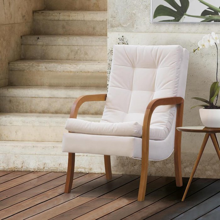Poltrona Imbé com Tecido Poliéster - Bege Claro