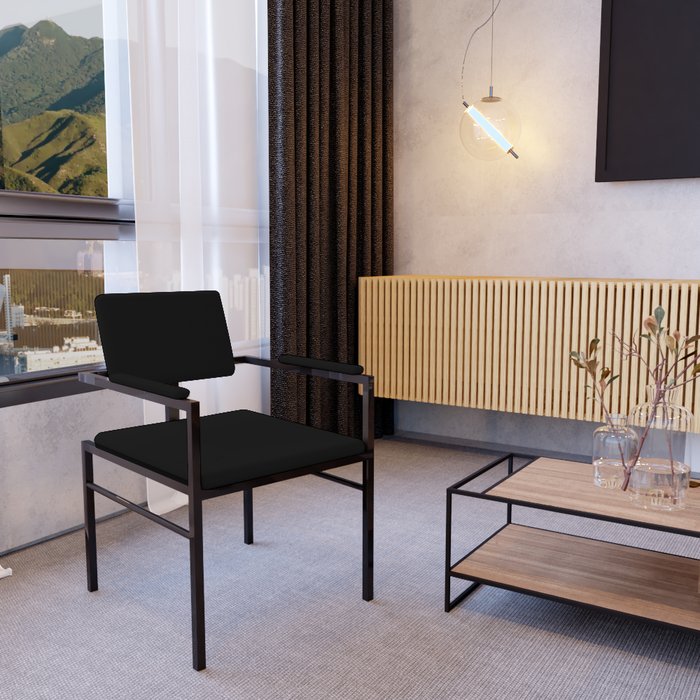 Poltrona Industrial Ferrara com Braço Estofado em Suede Preto