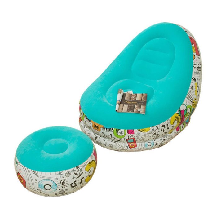 Poltrona Inflável Super Lounge Grafite com Puff Aveludado Vg Plus Azul
