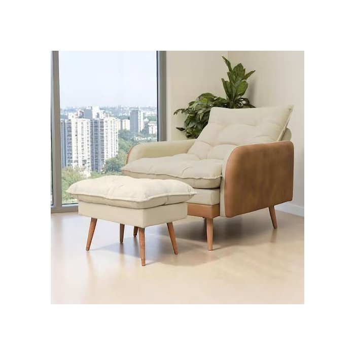 Poltrona Inglaterra com Puff Linho - Harpia Decor