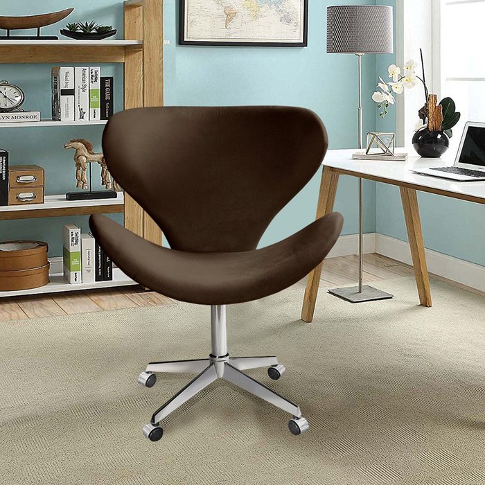 Poltrona Isis Cadeira Giratória Pés com Rodízio Decoração, Sala, Escritório, Recepção Marrom