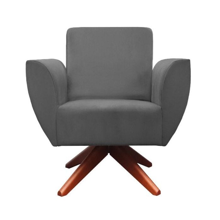 Poltrona Jolly Base Giratória de Madeira Veludo Chumbo - D'Rost