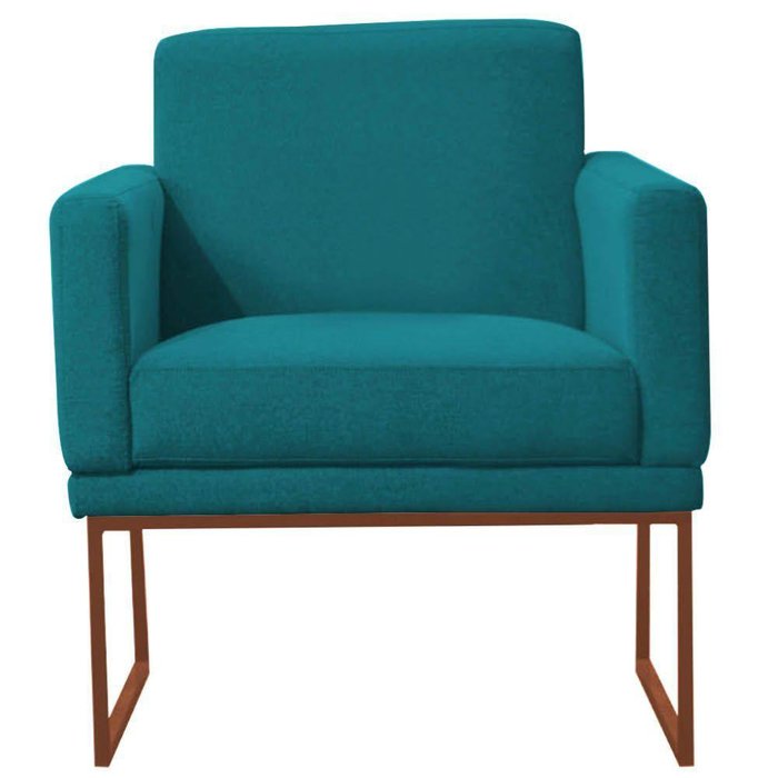 Poltrona Juliete Com Base Bronze Azul Turquesa