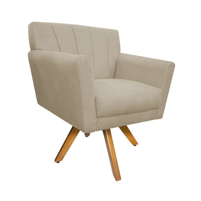 Poltrona Laura Base Giratória de Madeira Suede Bege - Doce Sonho Móveis