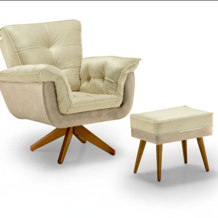 Poltrona Letícia com Base Giratória Madeira com Puff Tec 504/636 Bege