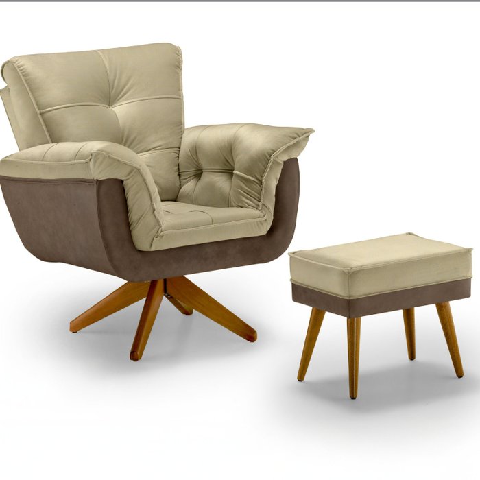 Poltrona Letícia com Base Giratória Madeira com Puff Tec 648/644 Bege