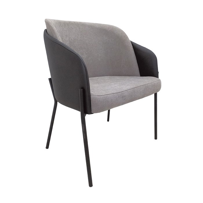Poltrona Lis 385 em Linho com Costas em Courvin Preto - Muller 780103 Cinza