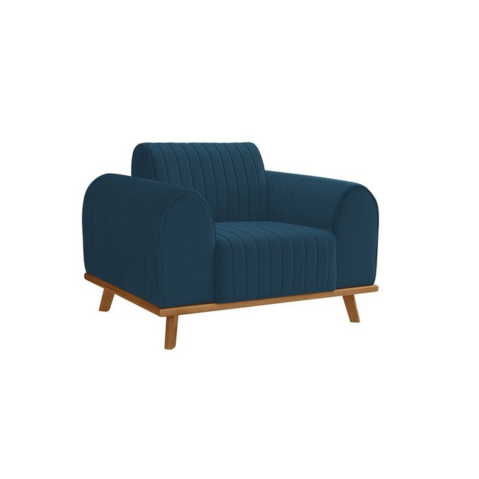 Poltrona Living Átila Estofada em Veludo Azul Marinho Base Madeira Maciça