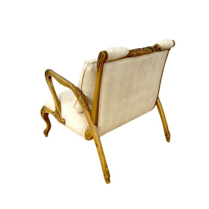 Poltrona Luiz Vx Francês Madeira Entalhada Jequitibá Assento Encosto Linho Estofado Art Nouveau ARGON Trendhouse
