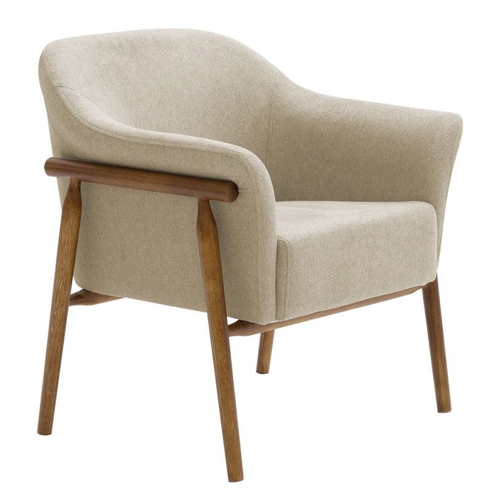 Poltrona Luna Base Madeira Castanho Poliéster Bouclé Bege - Nexta Casa Bege