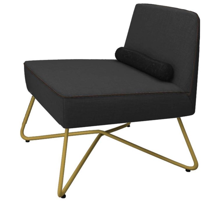 Poltrona Decorativa Luxo Doha Base Dourada Linho Grafite - Folk Móveis