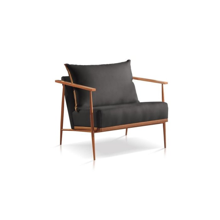 Poltrona Mari Linho Preto Base Cobre Confortável