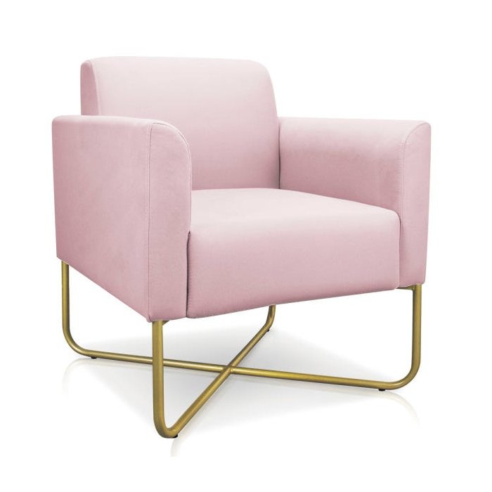 Poltrona Marisa Suede Rosa Bebê Base X Industrial Dourado - D'Rossi Rosa Bebê