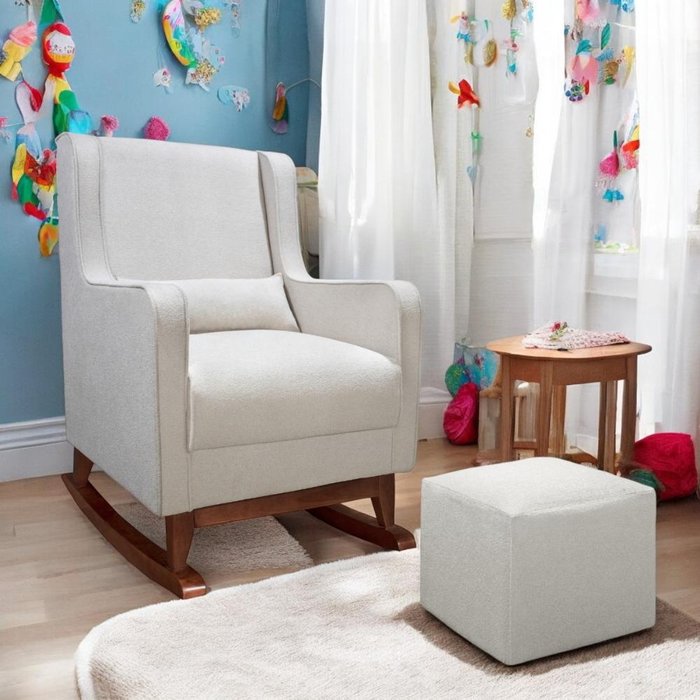 Poltrona Maternidade com Puff Irlanda Boucle Bege