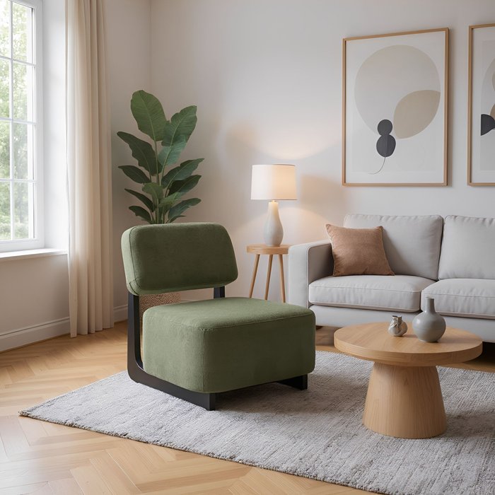 A Poltrona Molise combina conforto, praticidade e um design sofisticado para qualquer ambiente. Seu assento e encosto são revestidos em tecido bouclê, proporcionando um toque macio e aconchegante, ideal para momentos de descanso e relaxamento.