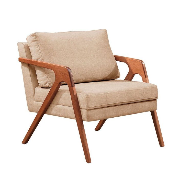 Poltrona Mona Luxo Base em Madeira Maciça Castellar Móbile Bege Bege
