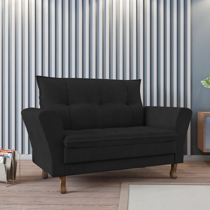 Poltrona Namoradeira Classic 2 Lugares Veludo Preto
