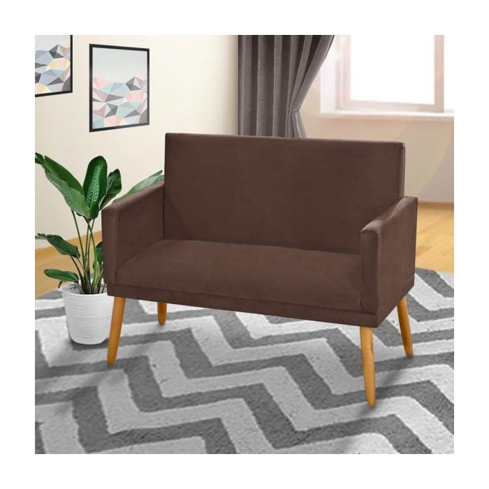 Poltrona Namoradeira Nina Pés Madeira Palito Suede Marrom Claro Marrom Claro