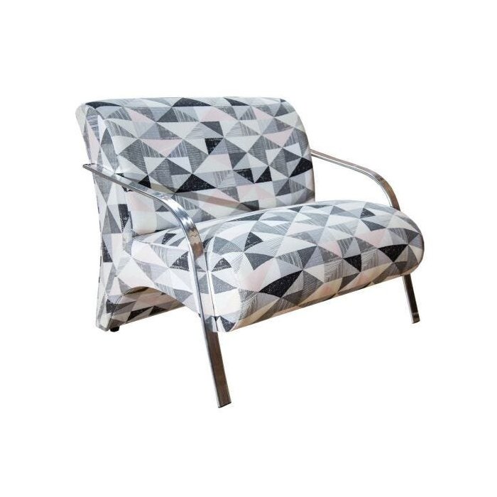 Poltrona Namoradeira Stilo Estampado Traçados Preto com Braços em Alumínio Polido - Dora Bela