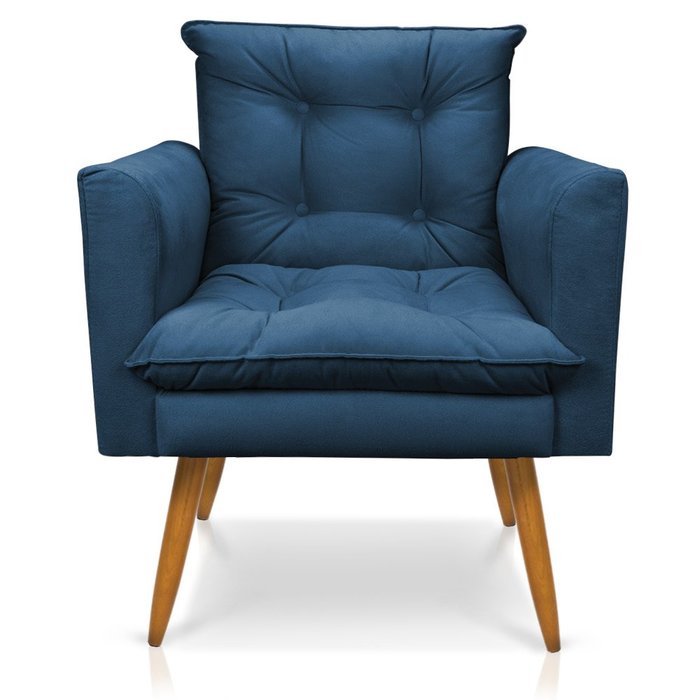 Poltrona Olivia Suede Pés Palito Castanho - Pallazio - Azul Marinho