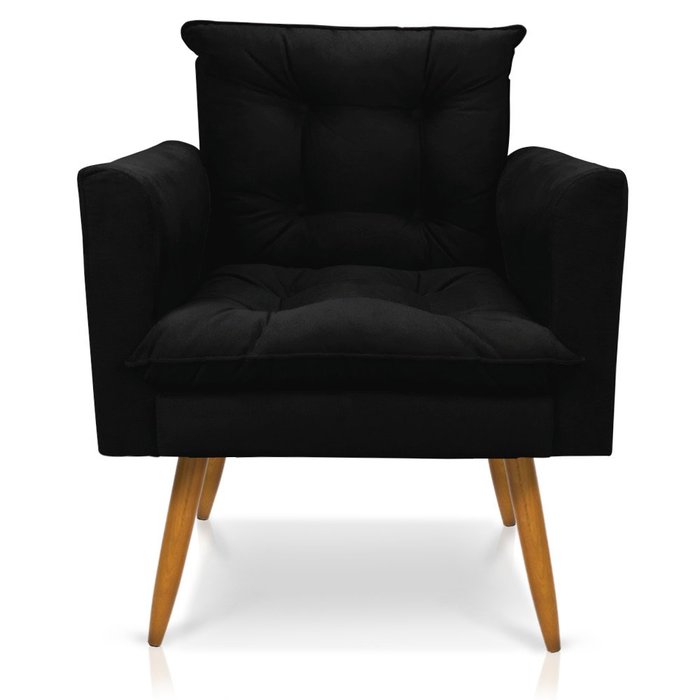 Poltrona Olivia Suede Preto Pés Palito Castanho - Pallazio