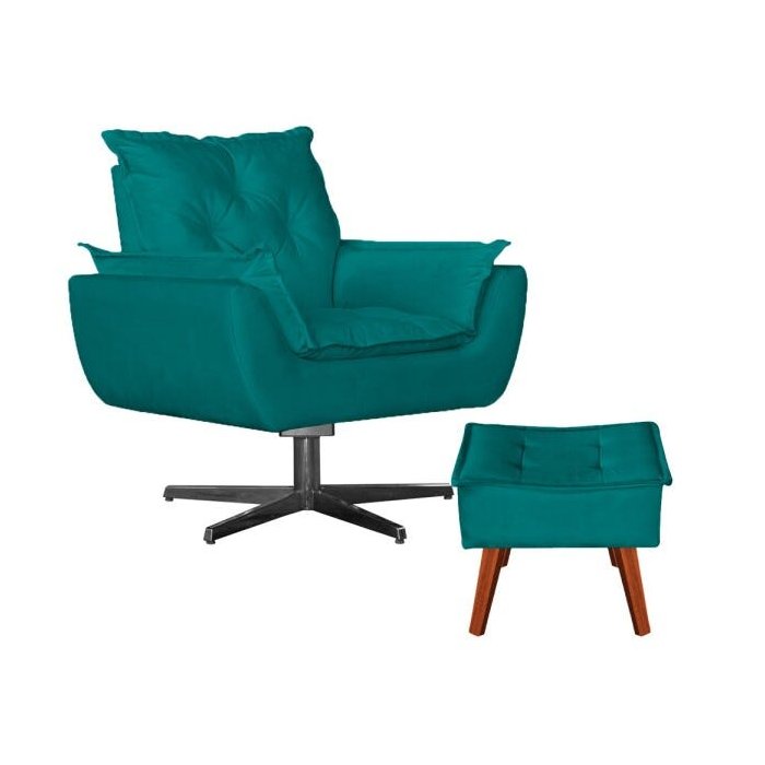Poltrona Opala Base de Balanço com Puff Amamentação Suede Azul azul