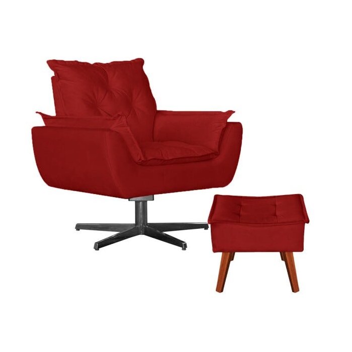 Poltrona Opala Base de Balanço com Puff Amamentação Suede Vermelho vermelho