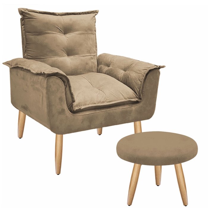 Poltrona Opala Maria Cadeira Decorativa + Puff Redondo Pés Palito Mercado Dos Móveis:capuccino